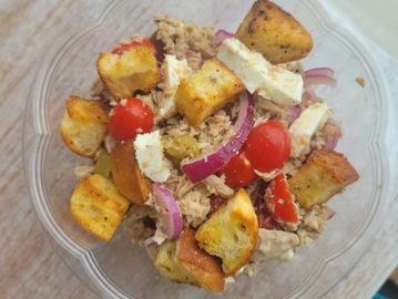 house made croutons, cherry tomatoes, red onions, pepperoncini, fresh mozzarella, flaked tuna, deli vinaigrette
