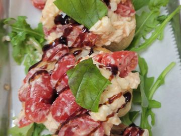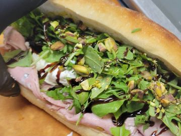 Mortadella, burrata, arugula, olive oil, balsamic glaze, crushed pistachio
