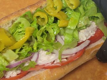 Tuna Salad, lettuce, sliced tomatoes, red onions, pepperoncini, olive oil, red wine vinegar